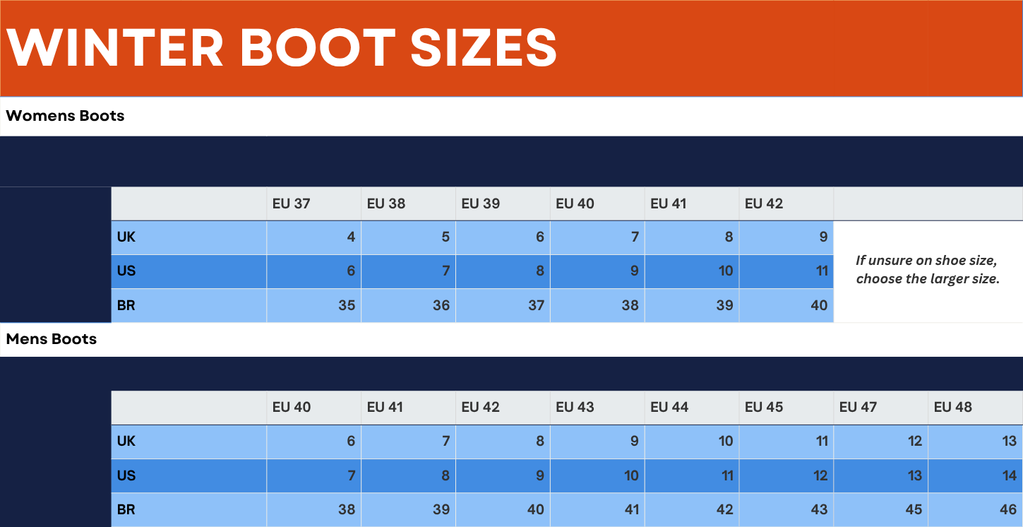 When choosing clothing sizes remember that you need to accommodate additional mid- and under-layers of clothes under your jacket and pants. Remember to bring warm long underwear and mid layers with you.